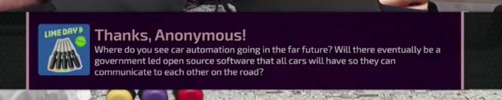 Where do you see car automation going in the far future? Will there eventually be a government led open source software that all cars will have so they can communicate to each other on the road?