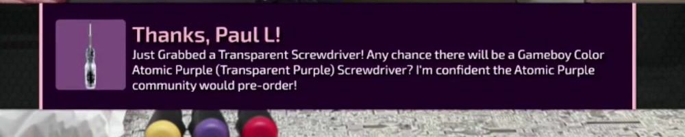 Just Grabbed a Transparent Screwdriver! Any chance there will be a Gameboy Color Atomic Purple (Transparent Purple) Screwdriver? I'm confident the Atomic Purple community would pre-order!