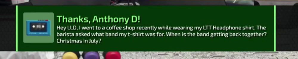 Hey LLD, I went to a coffee shop recently while wearing my LTT Headphone shirt. The barista asked what band my t-shirt was for. When is the band getting back together? Christmas in July?