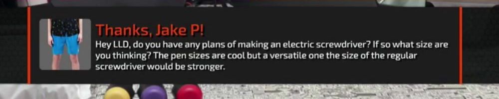 Hey LLD, do you have any plans of making an electric screwdriver? If so what size are you thinking? The pen sizes are cool but a versatile one the size of the regular screwdriver would be stronger.