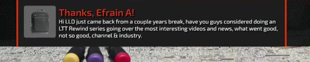 Hi LLD just came back from a couple years break, have you guys considered doing an LTT Rewind series going over the most interesting videos and news, what went good, not so good, channel & industry.