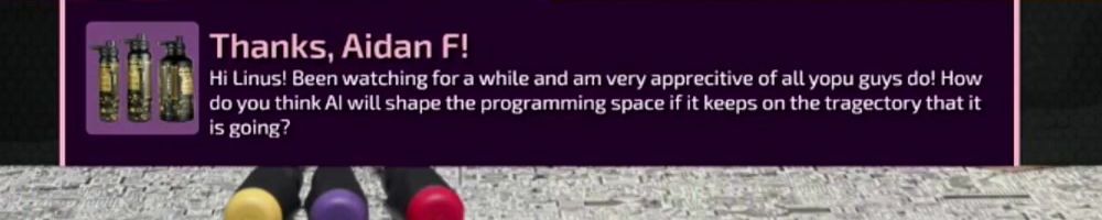 Hi Linus! Been watching for a while and am very apprecitive of all yopu guys do! How do you think Al will shape the programming space if it keeps on the trajectory that it is going?