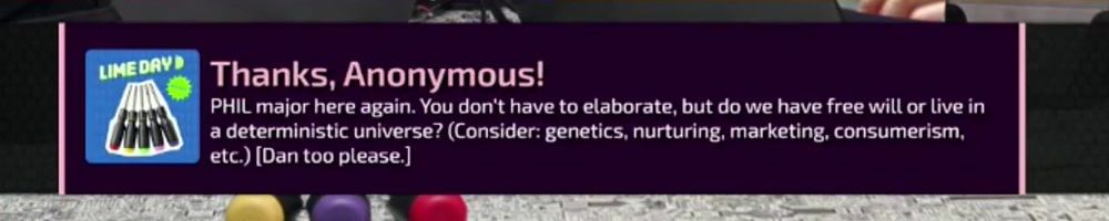 PHIL major here again. You don't have to elaborate, but do we have free will or live in