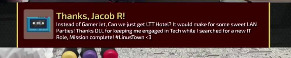 Instead of Gamer Jet, Can we just get LTT Hotel? It would make for some sweet LAN Parties! Thanks DLL for keeping me engaged in Tech while I searched for a new IT Role, Mission complete! #LinusTown <3
