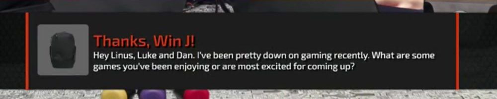 Hey Linus, Luke and Dan. I've been pretty down on gaming recently. What are some games you've been enjoying or are most excited for coming up?