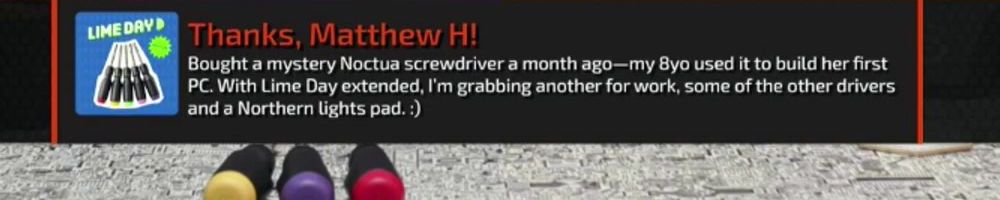 Bought a mystery Noctua screwdriver a month ago—my 8yo used it to build her first PC. With Lime Day extended, I'm grabbing another for work, some of the other drivers and a Northern lights pad. :)