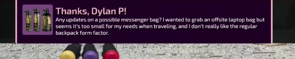 Any updates on a possible messenger bag? I wanted to grab an offsite laptop bag but seems it's too small for my needs when traveling, and I don't really like the regular backpack form factor.