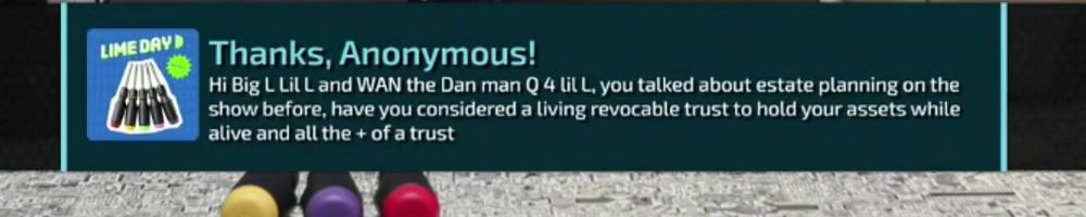 Hi Big L Lil L and WAN the Dan man Q 4 lil L, you talked about estate planning on the