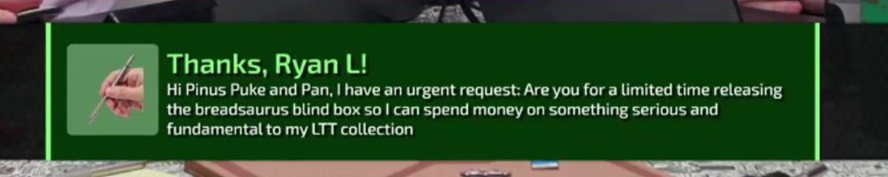 Hi Pinus Puke and Pan, I have an urgent request: Are you for a limited time releasing the breadsaurus blind box so I can spend money on something serious and fundamental to my LTT collection