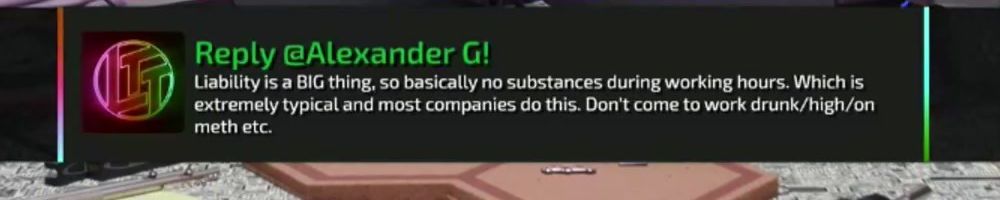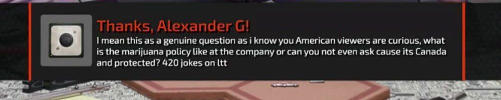 I mean this as a genuine question as i know you American viewers are curious, what is the marijuana policy like at the company or can you not even ask cause its Canada and protected? 420 jokes on ltt
