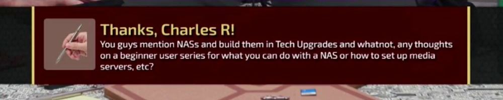 You guys mention NASs and build them in Tech Upgrades and whatnot, any thoughts on a beginner user series for what you can do with a NAS or how to set up media servers, etc?