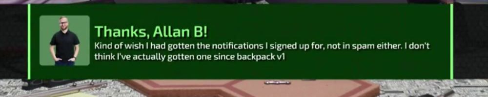 Kind of wish I had gotten the notifications I signed up for, not in spam either. I don't think I've actually gotten one since backpack v1