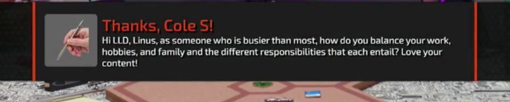Hi LLD, Linus, as someone who is busier than most, how do you balance your work, hobbies, and family and the different responsibilities that each entail? Love your content!