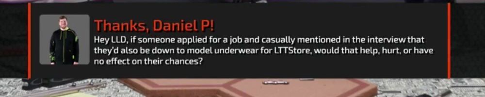 Hey LLD, if someone applied for a job and casually mentioned in the interview that they'd also be down to model underwear for LTTStore, would that help, hurt, or have no effect on their chances?
