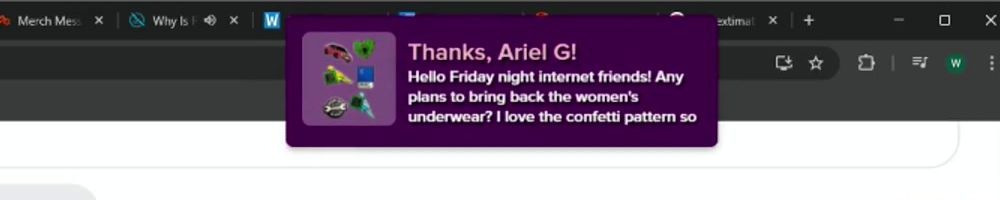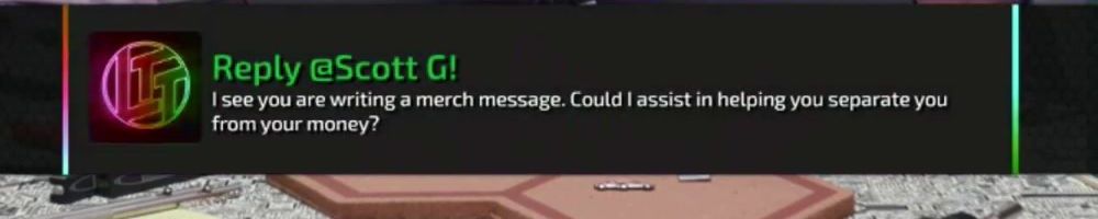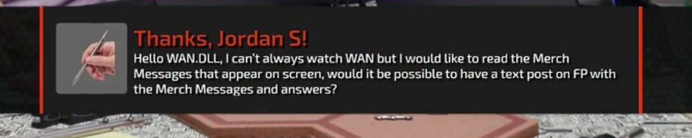 Hello WAN.DLL, I can't always watch WAN but I would like to read the Merch Messages that appear on screen, would it be possible to have a text post on FP with the Merch Messages and answers?