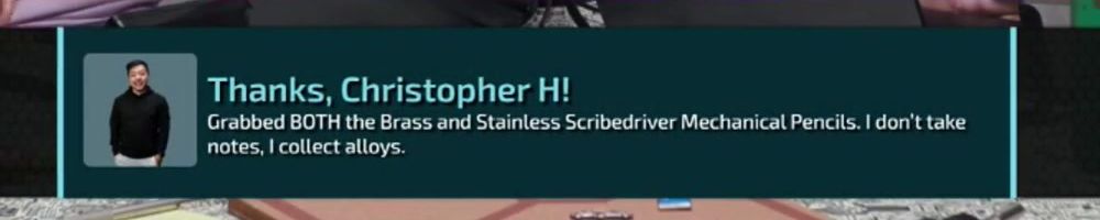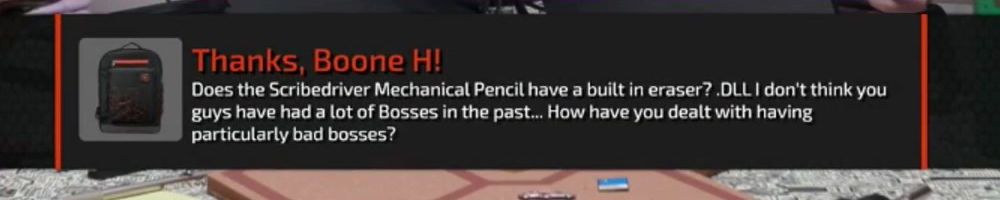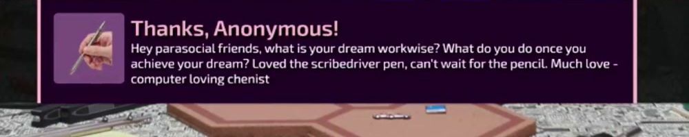 Hey parasocial friends, what is your dream workwise? What do you do once you achieve your dream? Loved the scribedriver pen, can't wait for the pencil. Much love - computer loving chenist