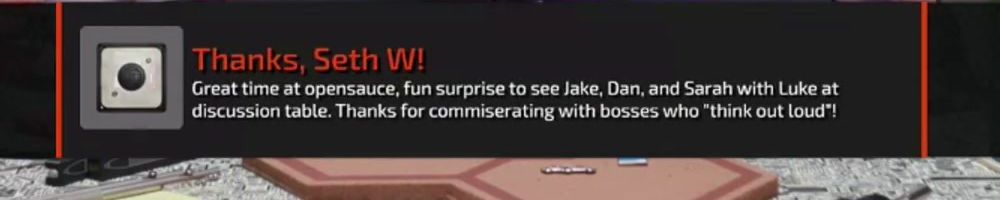 Great time at opensauce, fun surprise to see Jake, Dan, and Sarah with Luke at discussion table. Thanks for commiserating with bosses who "think out loud"!