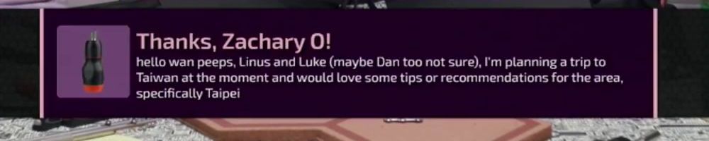 hello wan peeps, Linus and Luke (maybe Dan too not sure), I'm planning a trip to Taiwan at the moment and would love some tips or recommendations for the area, specifically Taipei