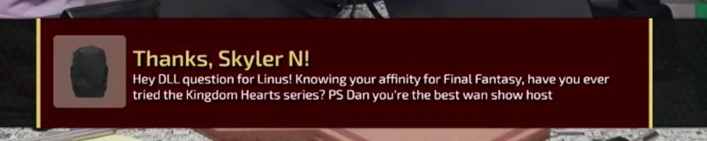 Hey DLL question for Linus! Knowing your affinity for Final Fantasy, have you ever tried the Kingdom Hearts series? PS Dan you're the best wan show host