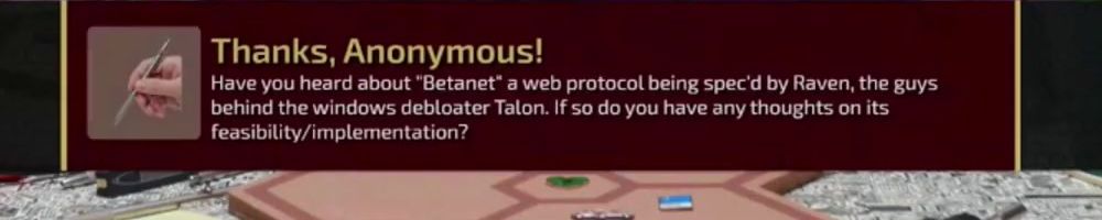 Have you heard about “Betanet” a web protocol being spec'd by Raven, the guys behind the windows debloater Talon. If so do you have any thoughts on its feasibility/implementation?