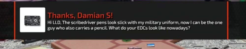 Hi LLD, The scribedriver pens look slick with my military uniform, now I can be the one guy who also carries a pencil. What do your EDCs look like nowadays?