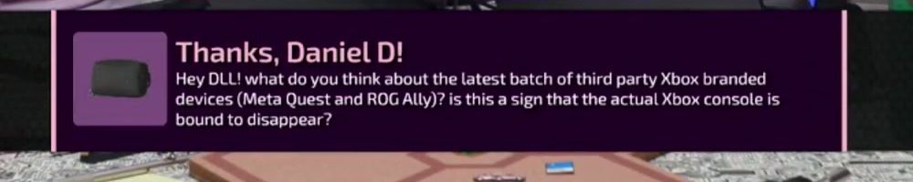 Hey DLL! what do you think about the latest batch of third party Xbox branded devices (Meta Quest and ROG Ally)? is this a sign that the actual Xbox console is bound to disappear?