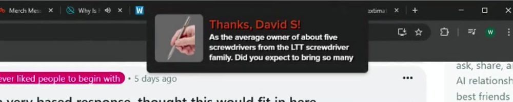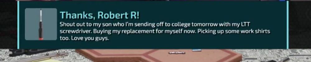 Shout out to my son who I'm sending off to college tomorrow with my LTT screwdriver. Buying my replacement for myself now. Picking up some work shirts too. Love you guys.