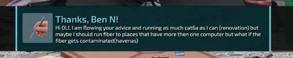 Hi DLL I am flowing your advice and running as much cat6a as I can (renovation) but maybe I should run fiber to places that have more than one computer but what if the fiber gets contaminated(havenas)