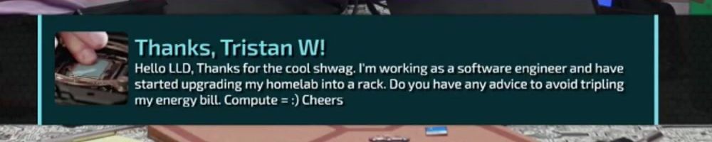 Hello LLD, Thanks for the cool shwag. I'm working as a software engineer and have started upgrading my homelab into a rack. Do you have any advice to avoid tripling my energy bill. Compute = :) Cheers