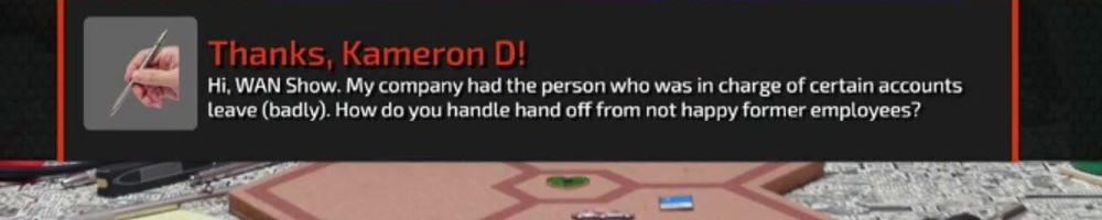Hi, WAN Show. My company had the person who was in charge of certain accounts leave (badly). How do you handle hand off from not happy former employees?