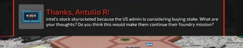 Intel's stock skyrocketed because the US admin is considering buying stake. What are your thoughts? Do you think this would make them continue their foundry mission?