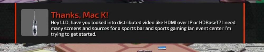 Hey LLD, have you looked into distributed video like HDMI over IP or HDBaseT? I need many screens and sources for a sports bar and sports gaming lan event center I'm trying to get started.