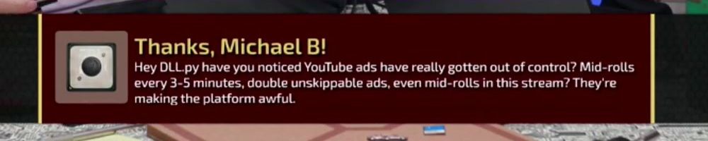 Hey DLL py have you noticed YouTube ads have really gotten out of control? Mid-rolls every 3-5 minutes, double unskippable ads, even mid-rolls in this stream? They're making the platform awful.