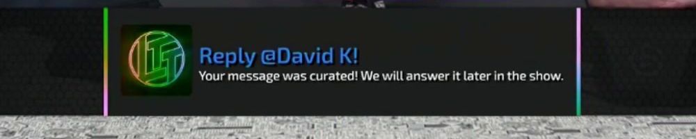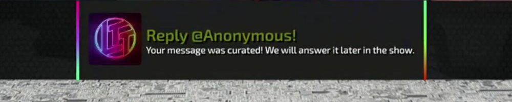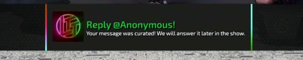 Reply @Anonymous! Your message was curated! We will answer it later in the show.