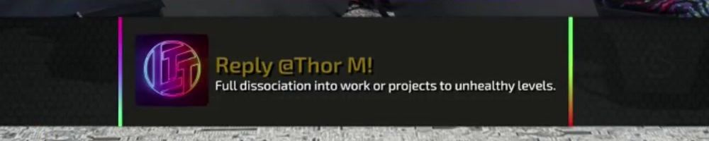 Reply @Thor M! Full dissociation into work or projects to unhealthy levels.