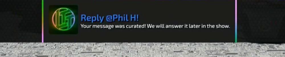 Reply @Phil H! Your message was curated! We will answer it later in the show.
