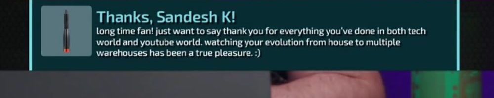 Thanks, Sandesh K! long time fan! just want to say thank you for everything you've done in both tech world and youtube world. watching your evolution from house to multiple warehouses has been a true pleasure. :)