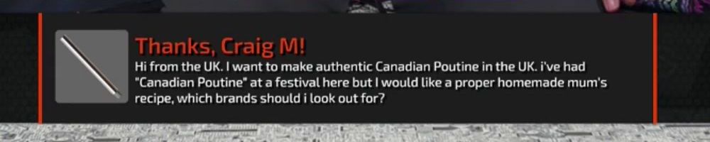 Thanks, Craig M! Hi from the UK. I want to make authentic Canadian Poutine in the UK. i've had "Canadian Poutine" at a festival here but I would like a proper homemade mum's recipe, which brands should i look out for?