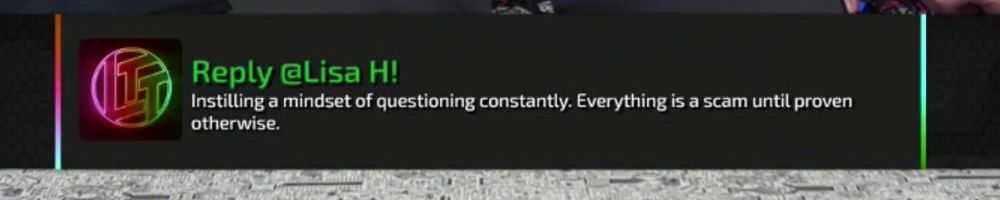 Reply @Lisa H! Instilling a mindset of questioning constantly. Everything is a scam until proven otherwise.