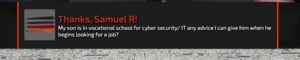 Thanks, Samuel R! My son is in vocational school for cyber security/ IT any advice | can give him when he begins looking for a job?