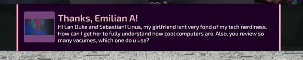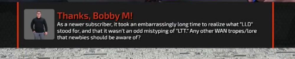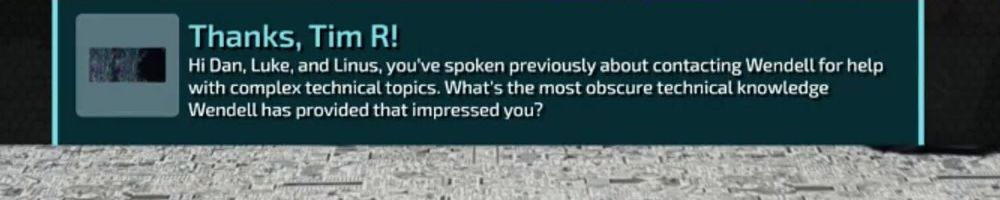 Thanks, Tim R! Hi Dan, Luke, and Linus, you've spoken previously about contacting Wendell for help with complex technical topics. What's the most obscure technical knowledge Wendell has provided that impressed you?