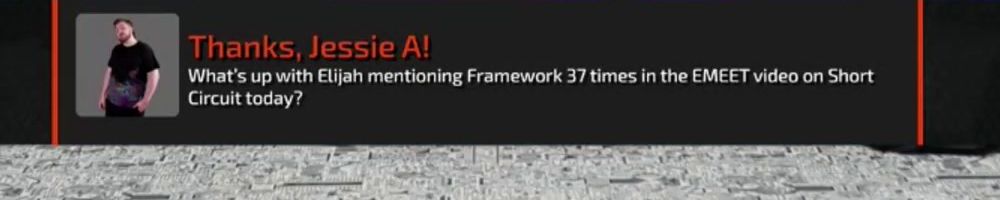 Thanks, Jessie A! What's up with Elijah mentioning Framework 37 times in the EMEET video on Short Circuit today?