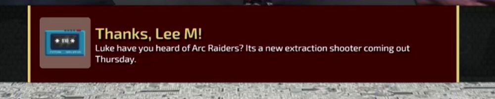 Thanks, Lee M! Luke have you heard of Arc Raiders? Its a new extraction shooter coming out Thursday.