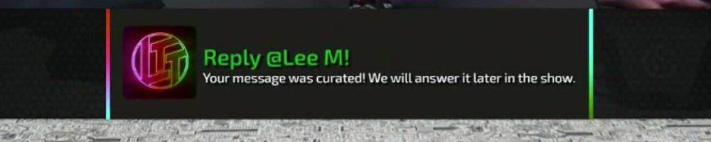 Reply @Lee M! Your message was curated! We will answer it later in the show.
