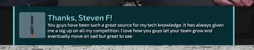 Thanks, Steven F! You guys have been such a great source for my tech knowledge. It has always given me a leg up on all my competition. I love how you guys let your team grow and eventually move on sad but great to see