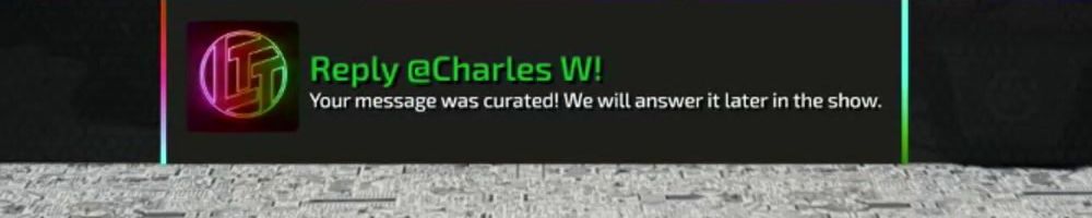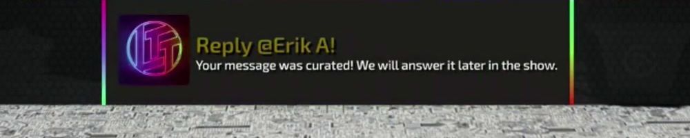 Reply @Thomas H! Your message was curated! We will answer it later in the show.