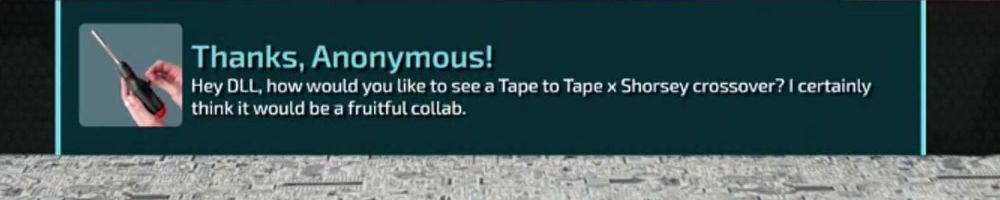 Thanks, Anonymous! Hey DLL, how would you like to see a Tape to Tape x Shorsey crossover? I certainly think it would be a fruitful collab.