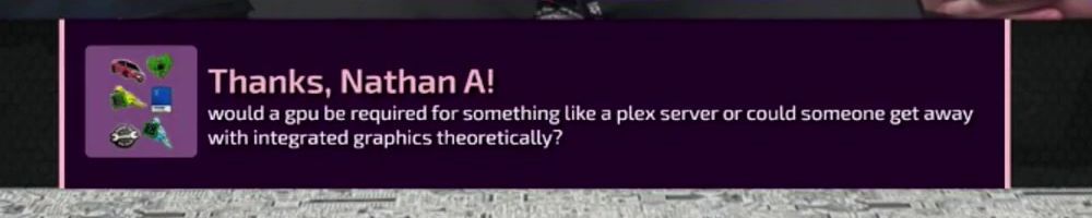 Thanks, Nathan A! would a gpu be required for something like a plex server or could someone get away with integrated graphics theoretically?