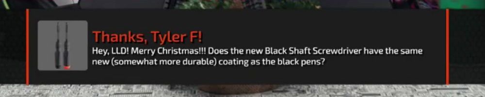 Hey, LLD! Merry Christmas!!! Does the new Black Shaft Screwdriver have the same