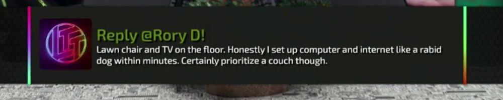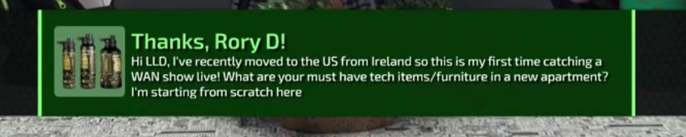 Hi LLD, I've recently moved to the US from Ireland so this is my first time catching a WAN show live! What are your must have tech items/furniture in a new apartment? I'm starting from scratch here